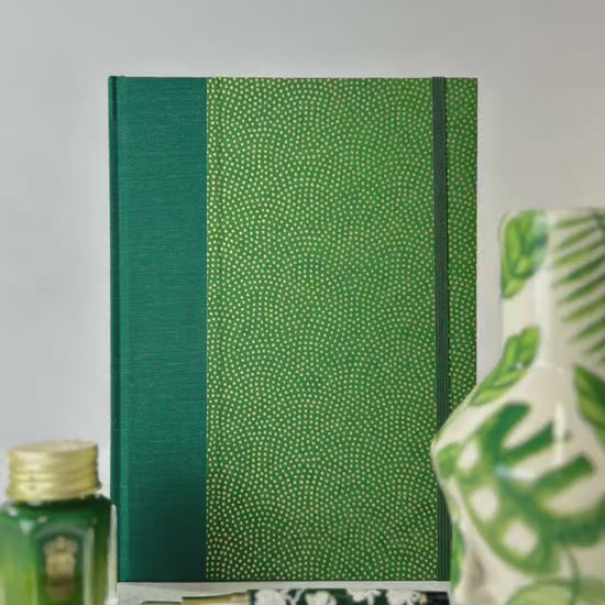 (PRE-ORDER OCTOBER DELIVERY) A5 Hardcover Notebook with Golden Polka Dots on Green Chiyogami Paper