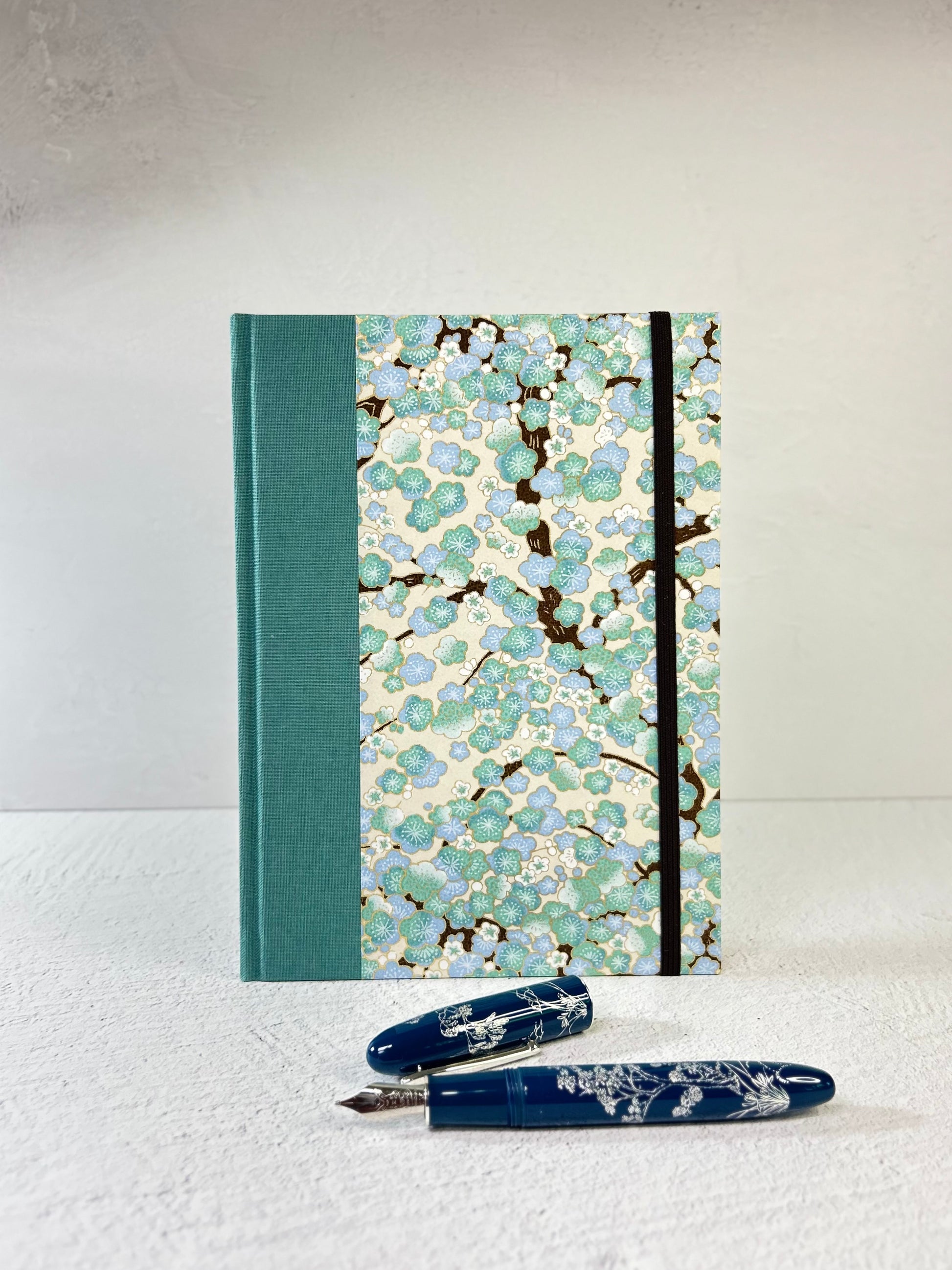 A5 160-page Hardcover Notebook finished Blue Cherry Blossoms Chiyogami Japanese Paper