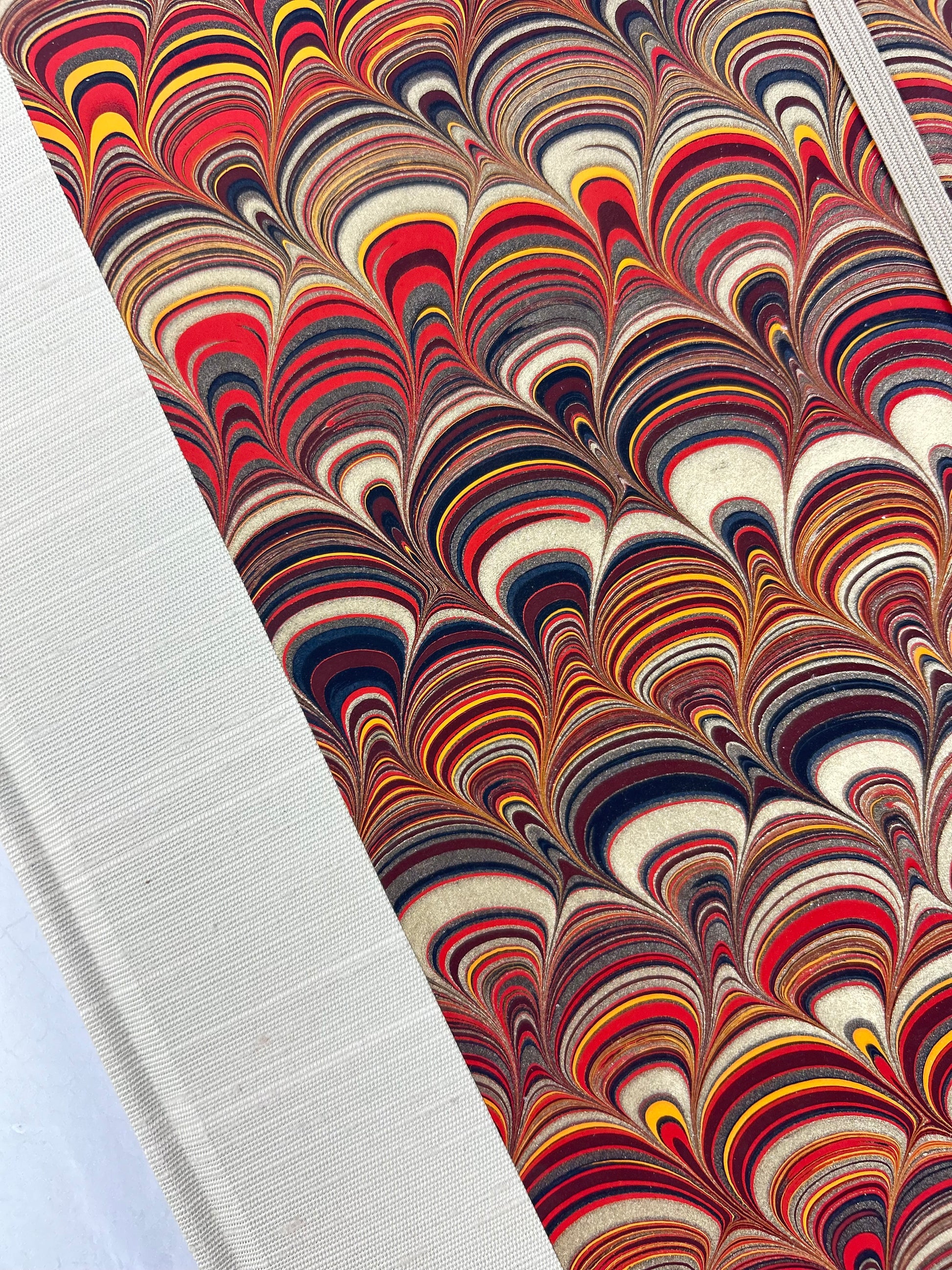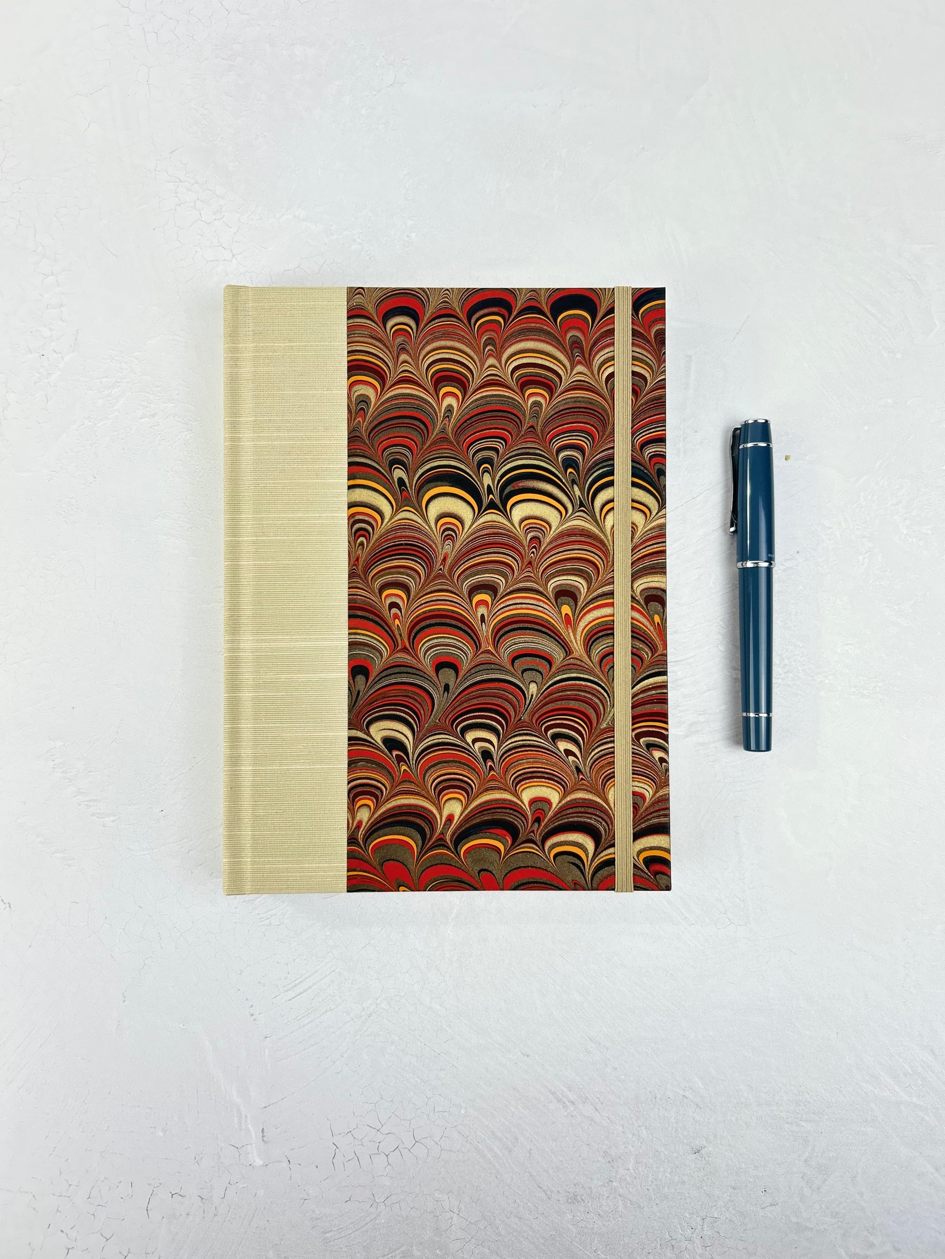 A5 Hardcover Notebook finished in Platinum Japanese book cloth and Italian hand-marbled Renato Crepaldi paper