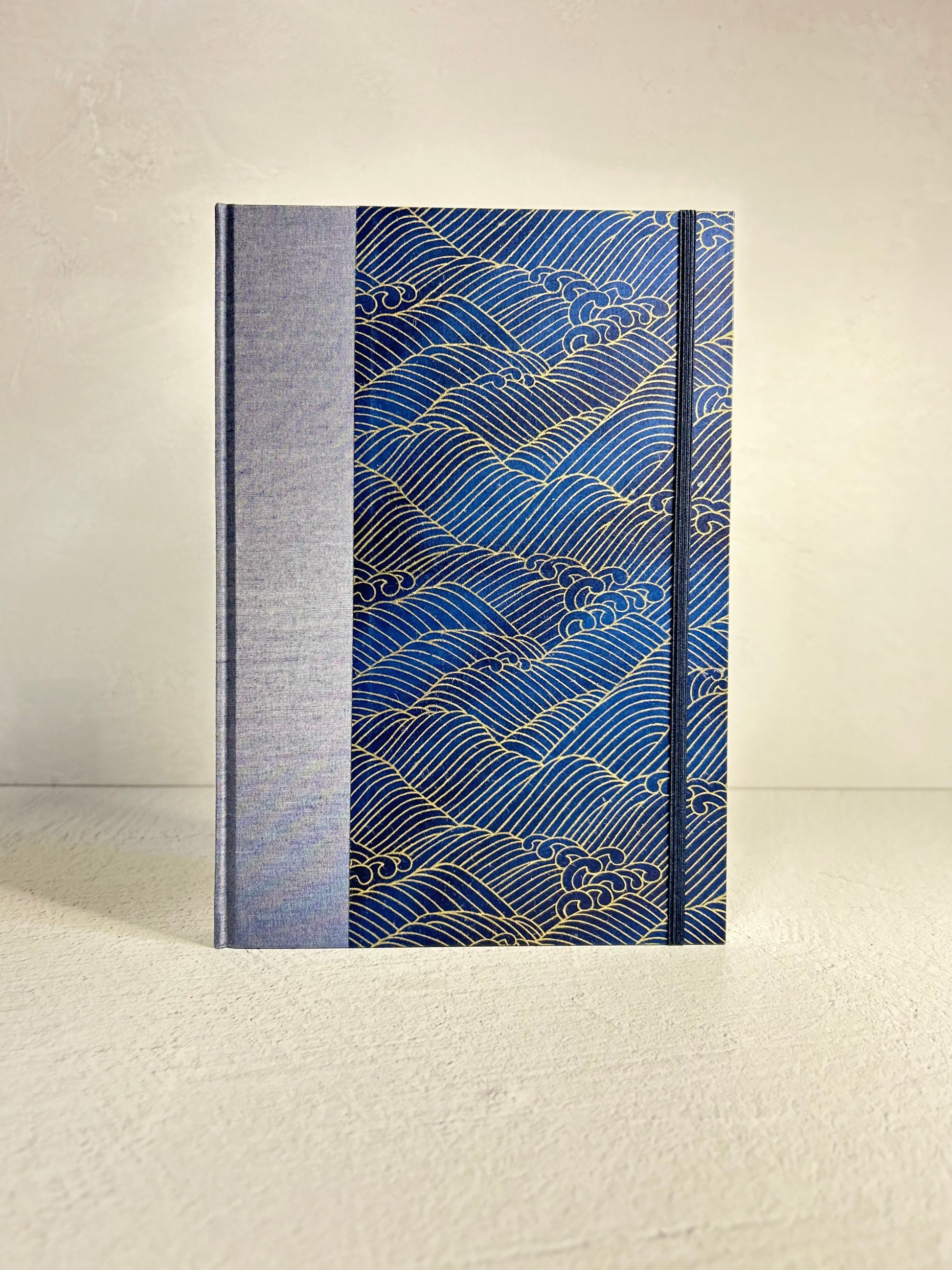 (PRE-ORDER NOVEMBER Delivery) B5 Hardcover Notebook finished in Golden Waves on Blue Chiyogami Paper