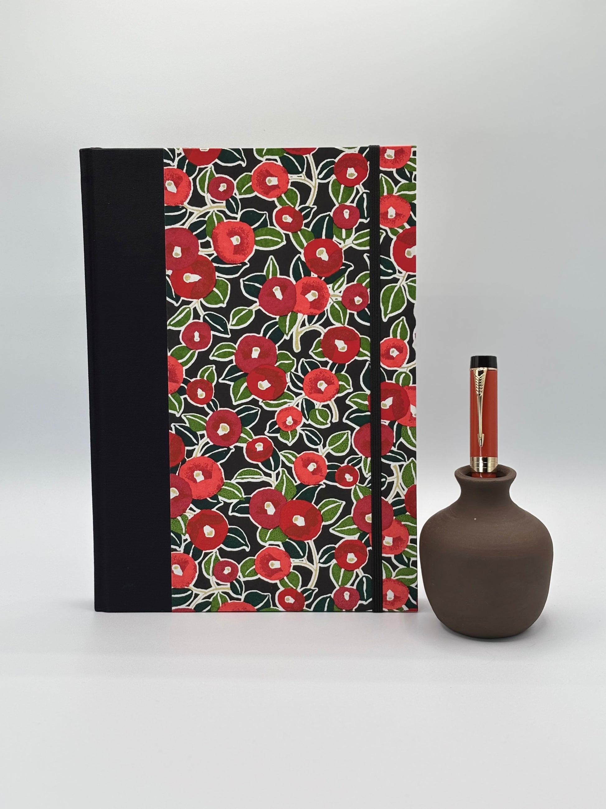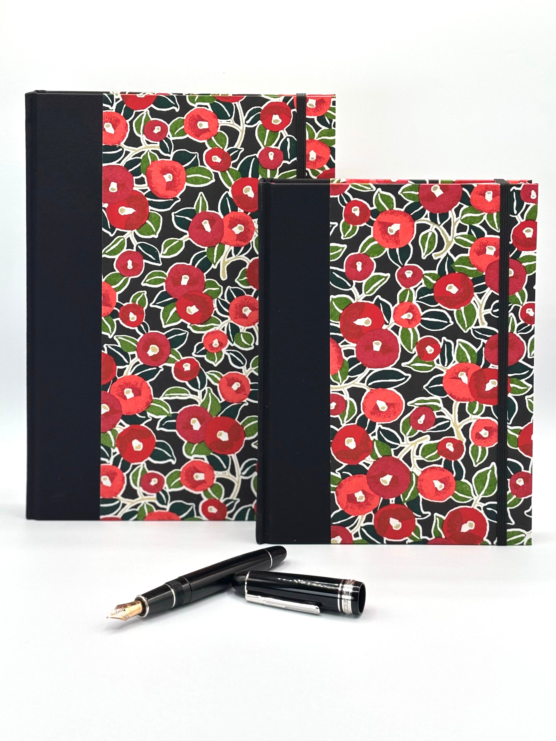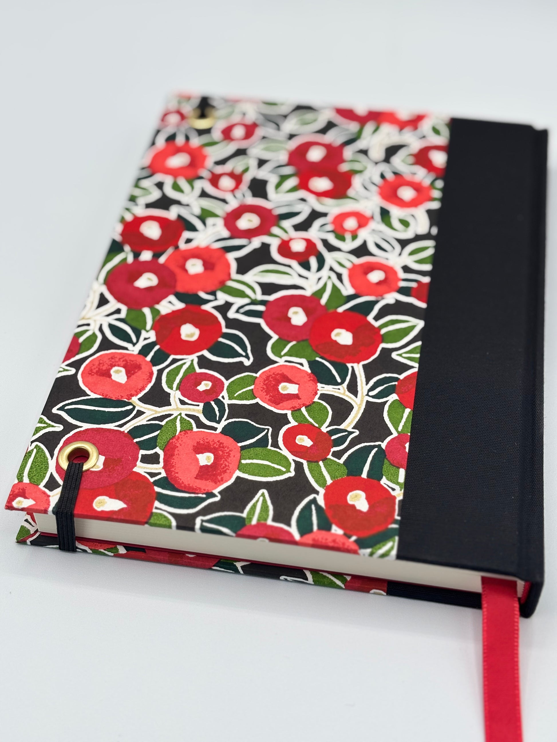 B5 Hardcover Cover Notebook finished in Red Poppies on Black Chiyogami Paper