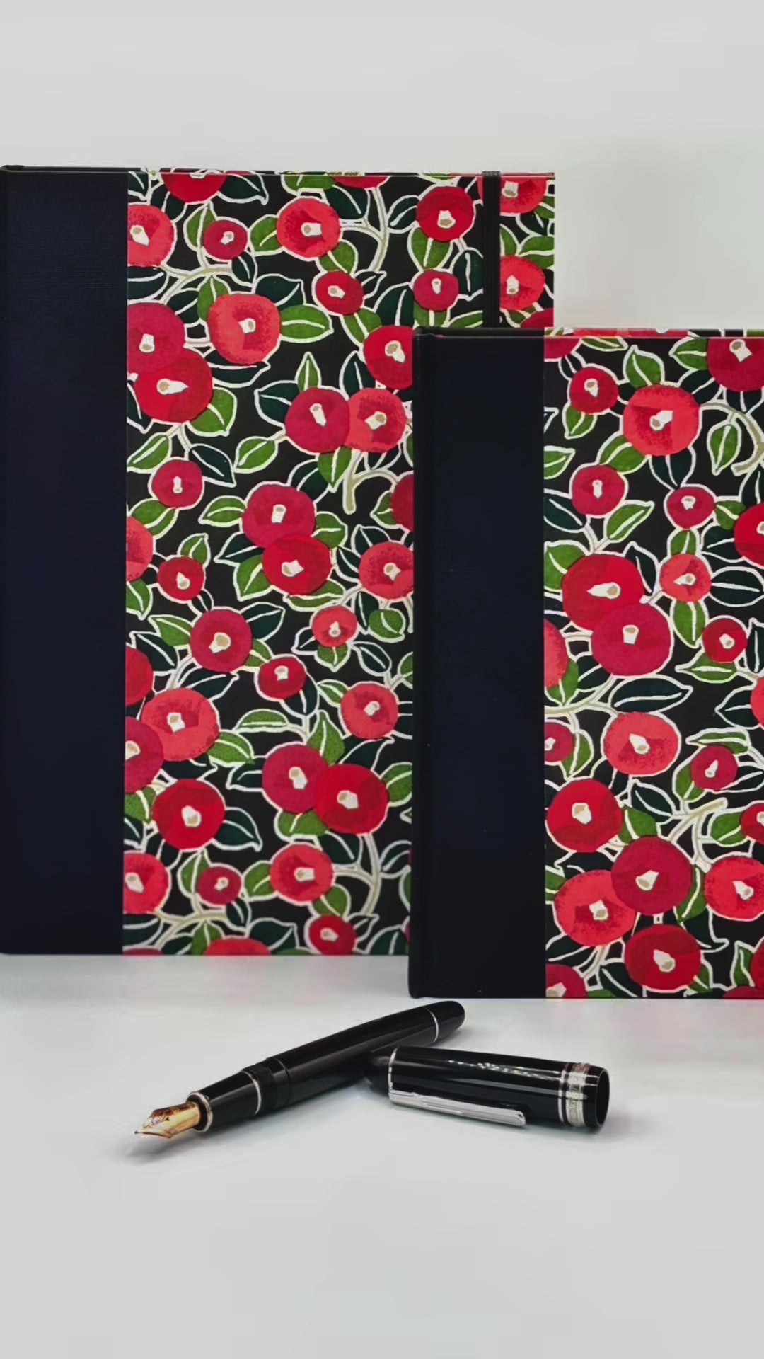 Luxurious Japanese book cloth and silkscreened Japanese Chiyogami decorative paper, is used on the hardcover casing.