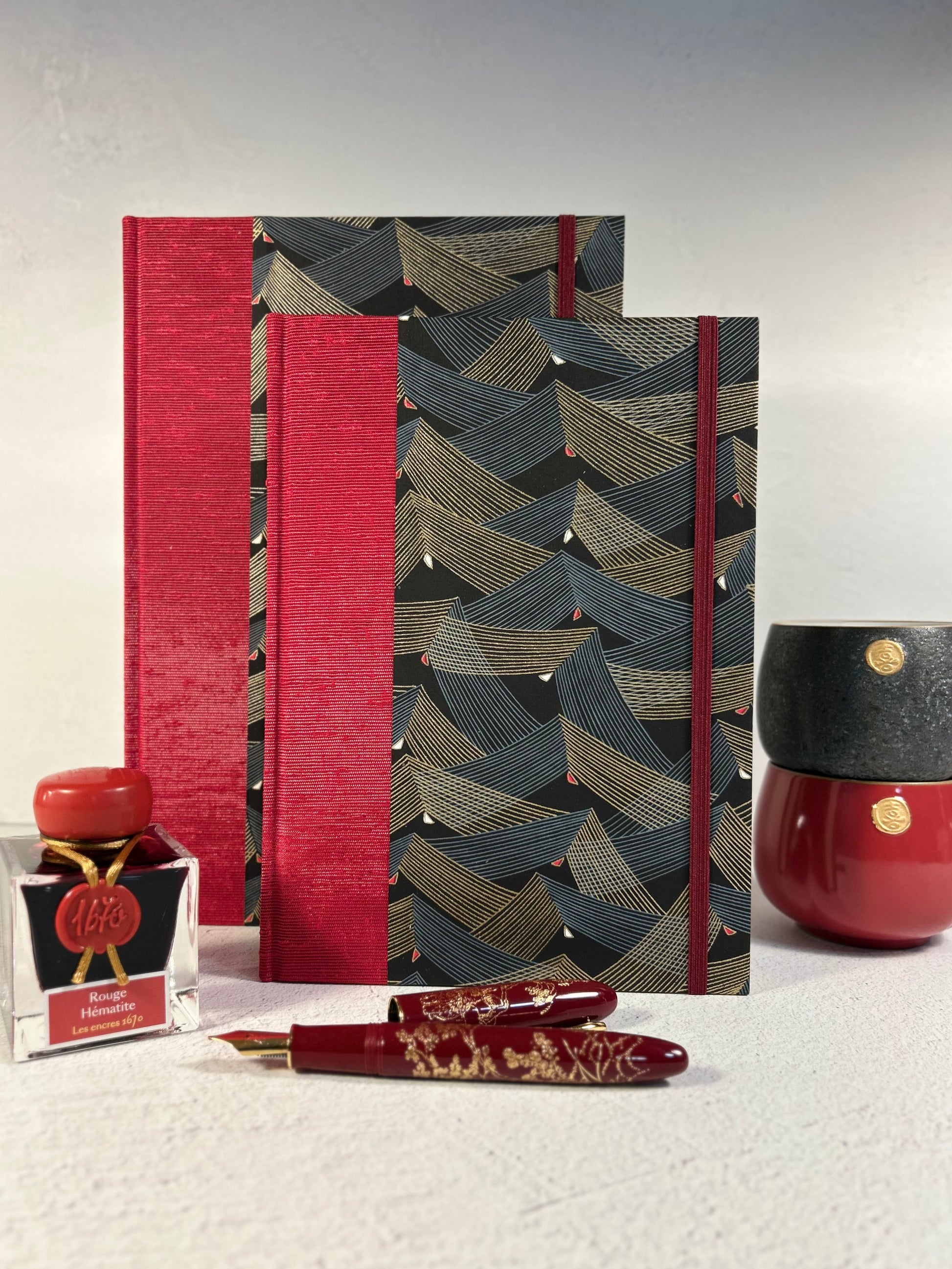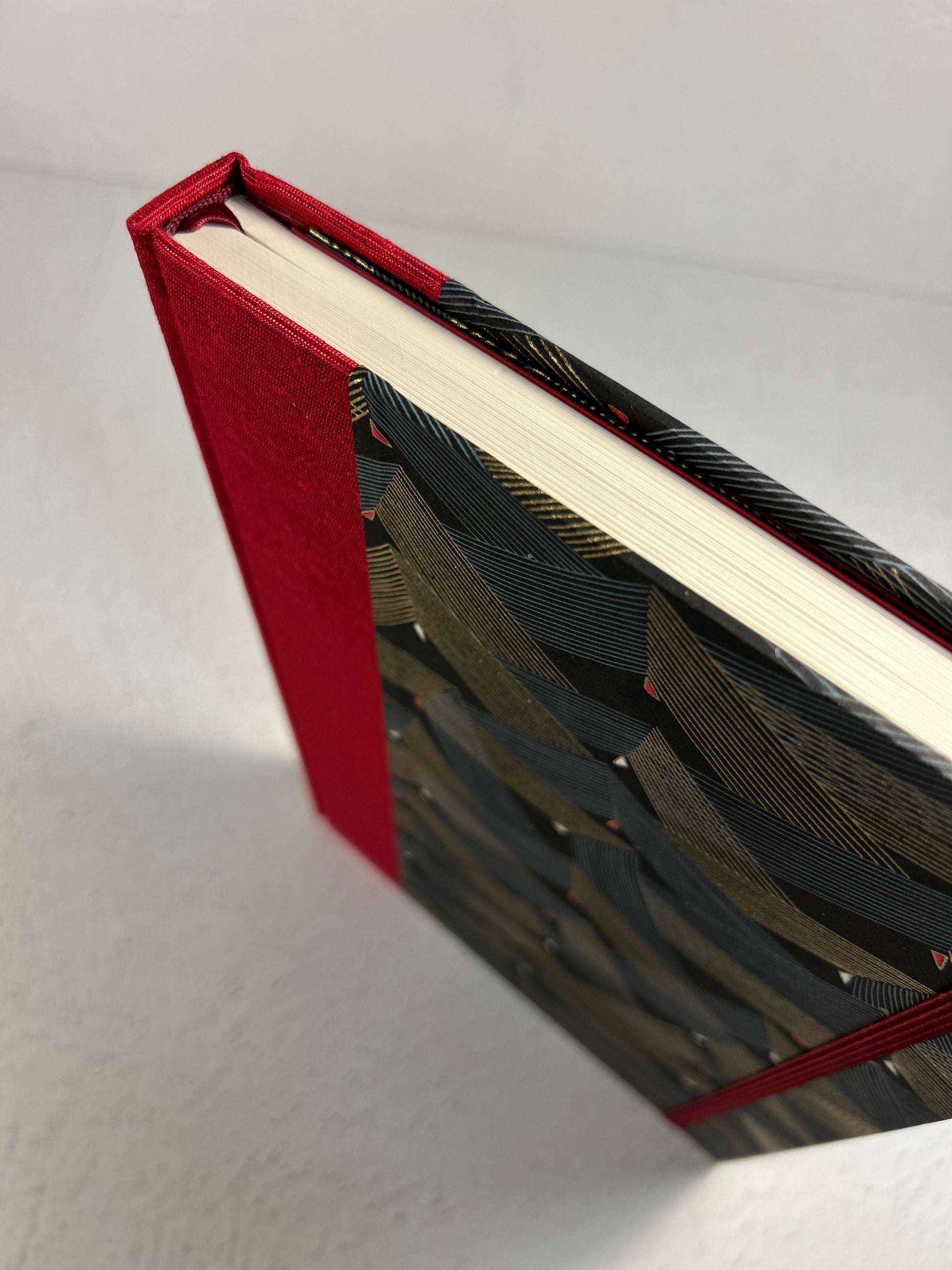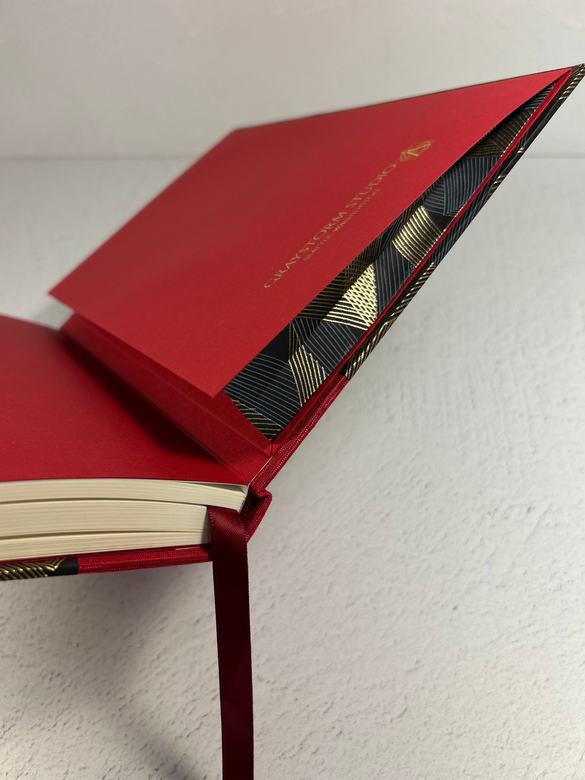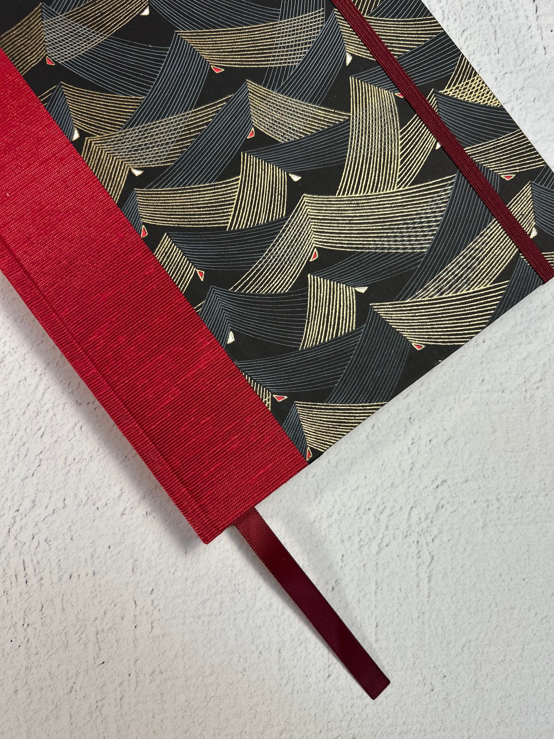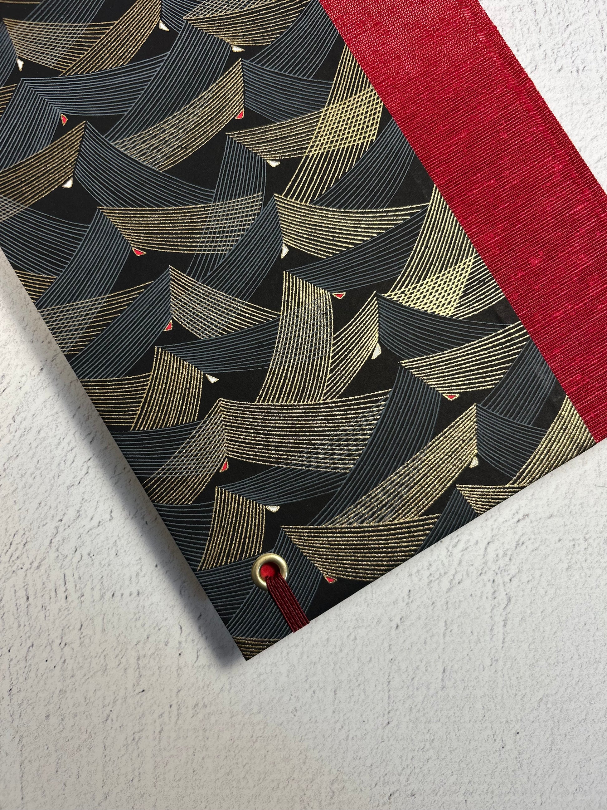 (PRE-ORDER NOVEMBER Delivery) B5 192-page Hardcover Notebook finished in Cardinal Red Japanese Bookcloth and Black and Gold Chiyogami Japanese Paper