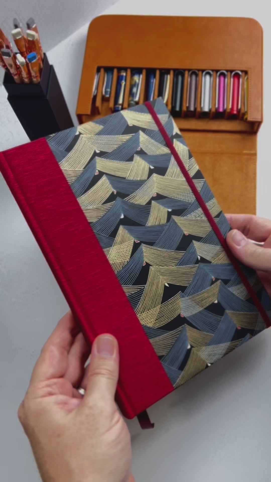 Luxurious Japanese book cloth and silkscreened Japanese Chiyogami decorative paper, is used on the hardcover casing.