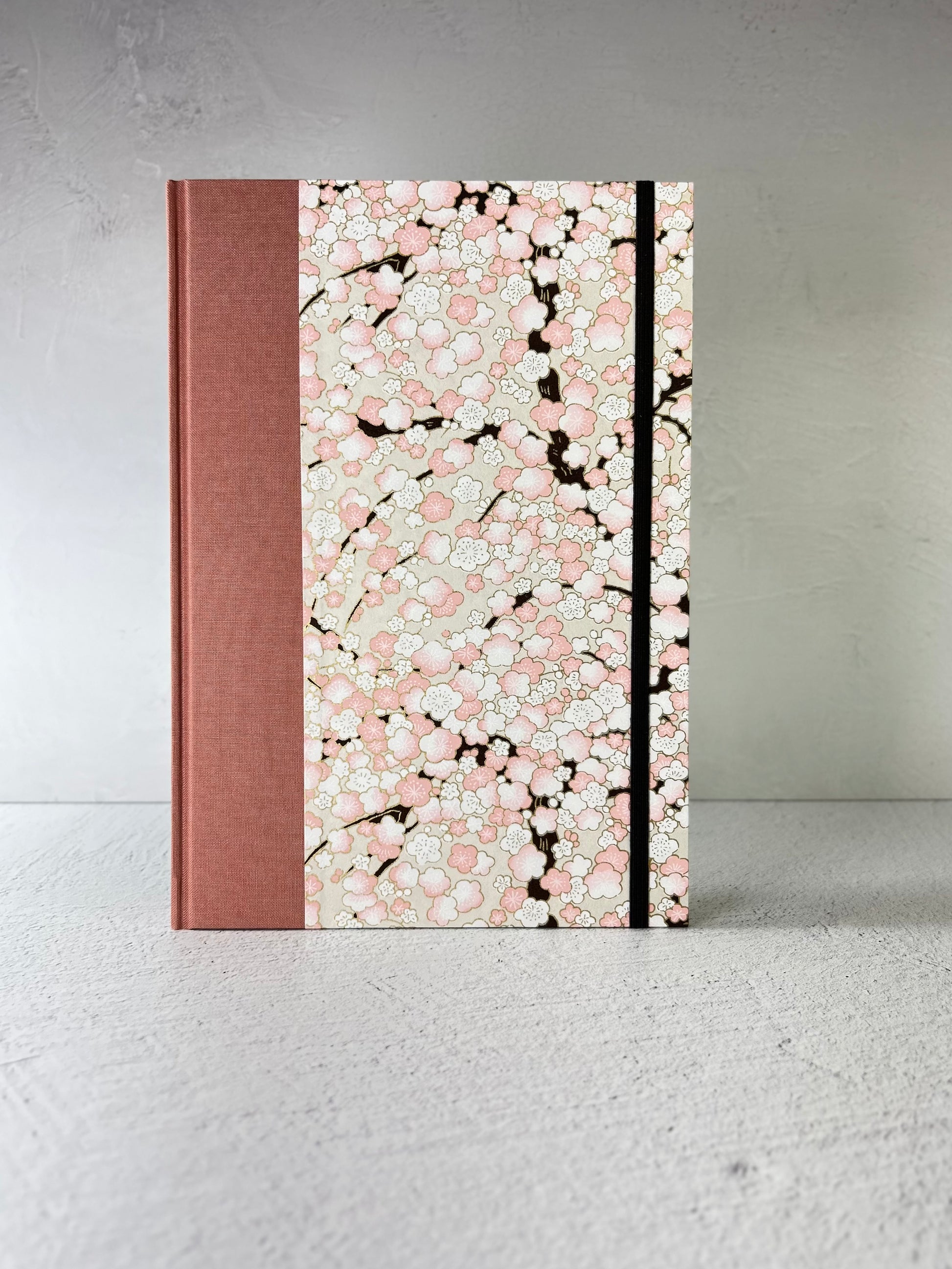 B5 192-page Hardcover Notebook finished Pink and White Cherry Blossoms Chiyogami Japanese Paper