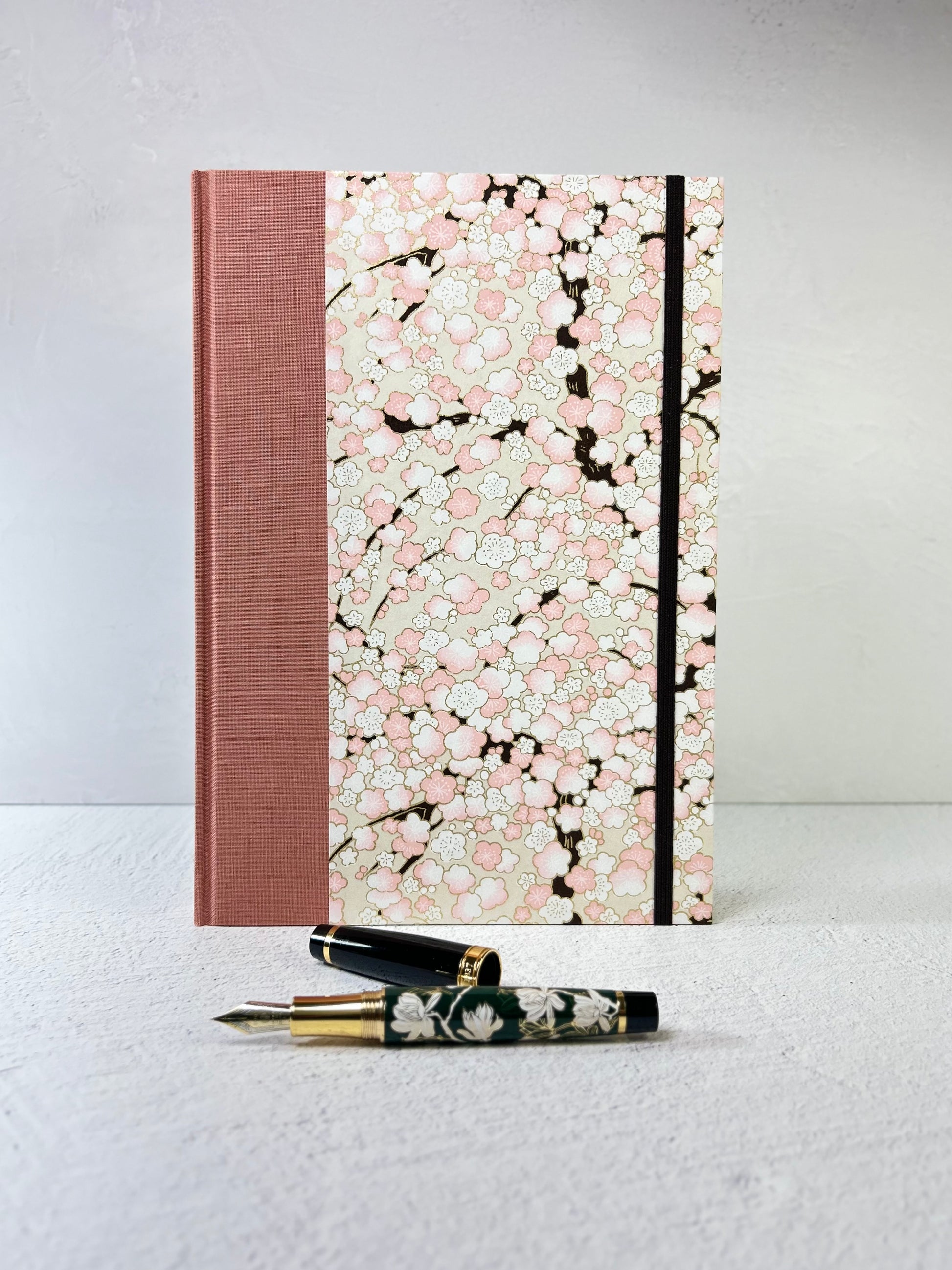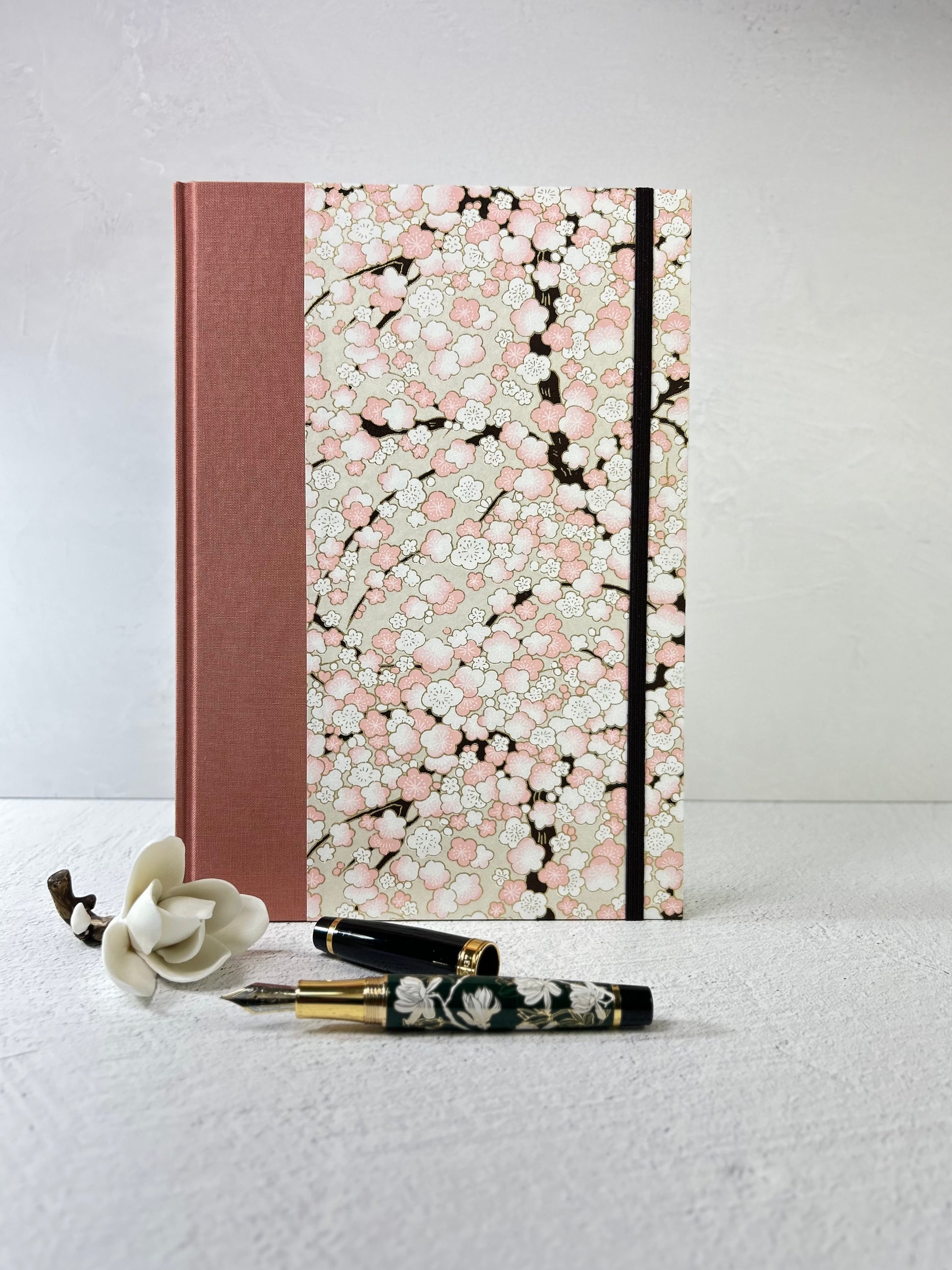 B5 192-page Hardcover Notebook finished Pink and White Cherry Blossoms Chiyogami Japanese Paper