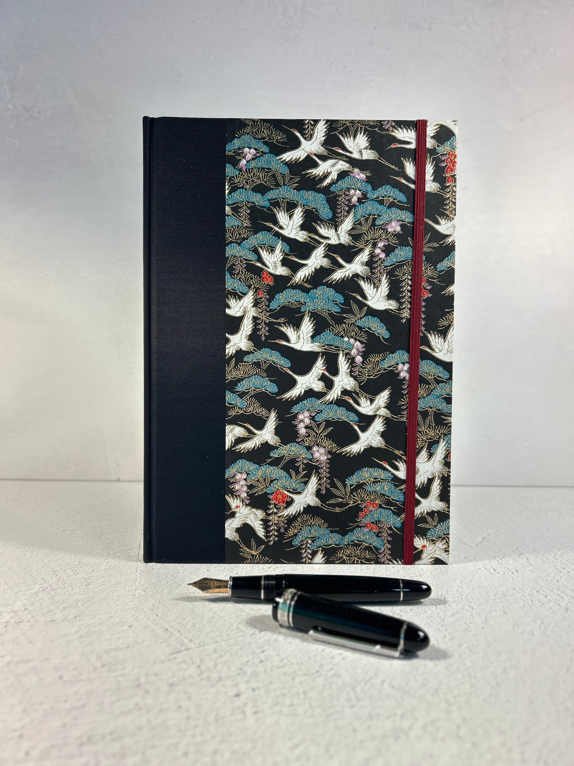 B5 Hardcover Notebook with White Cranes Chiyogami Japanese Paper