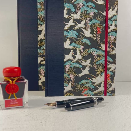 Luxurious Japanese book cloth and silkscreened Japanese Chiyogami decorative paper, is used on the hardcover casing.