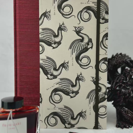 This Halloween, invite a touch of medieval mystique to your writing ritual. Our newest release combines dark red Japanese book cloth with a classical Italian Letterpress dragon motif—a design that exudes strength, elegance, and mystery.