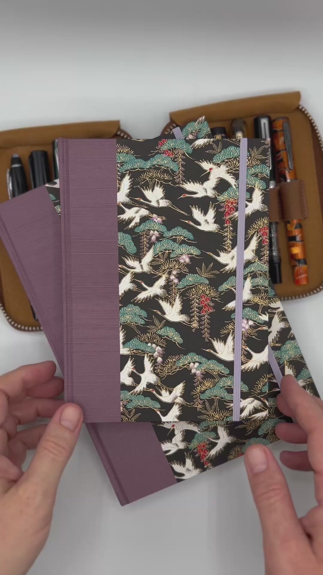 Luxurious Japanese book cloth and silkscreened Japanese Chiyogami decorative paper, is used on the hardcover casing.