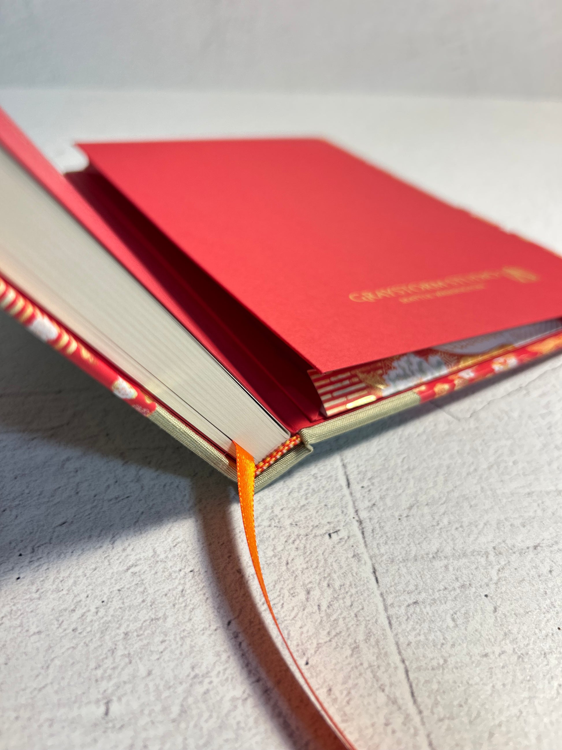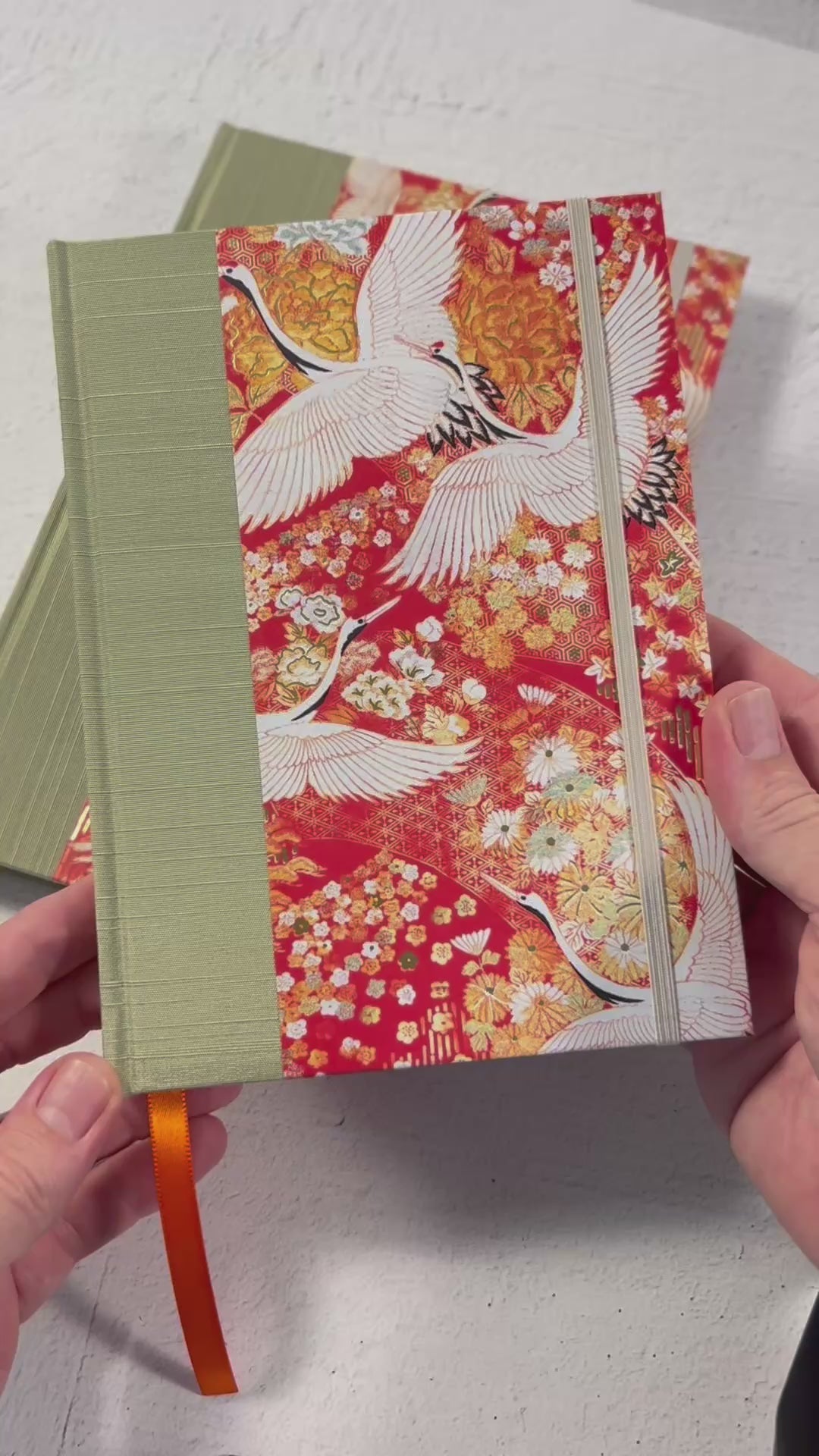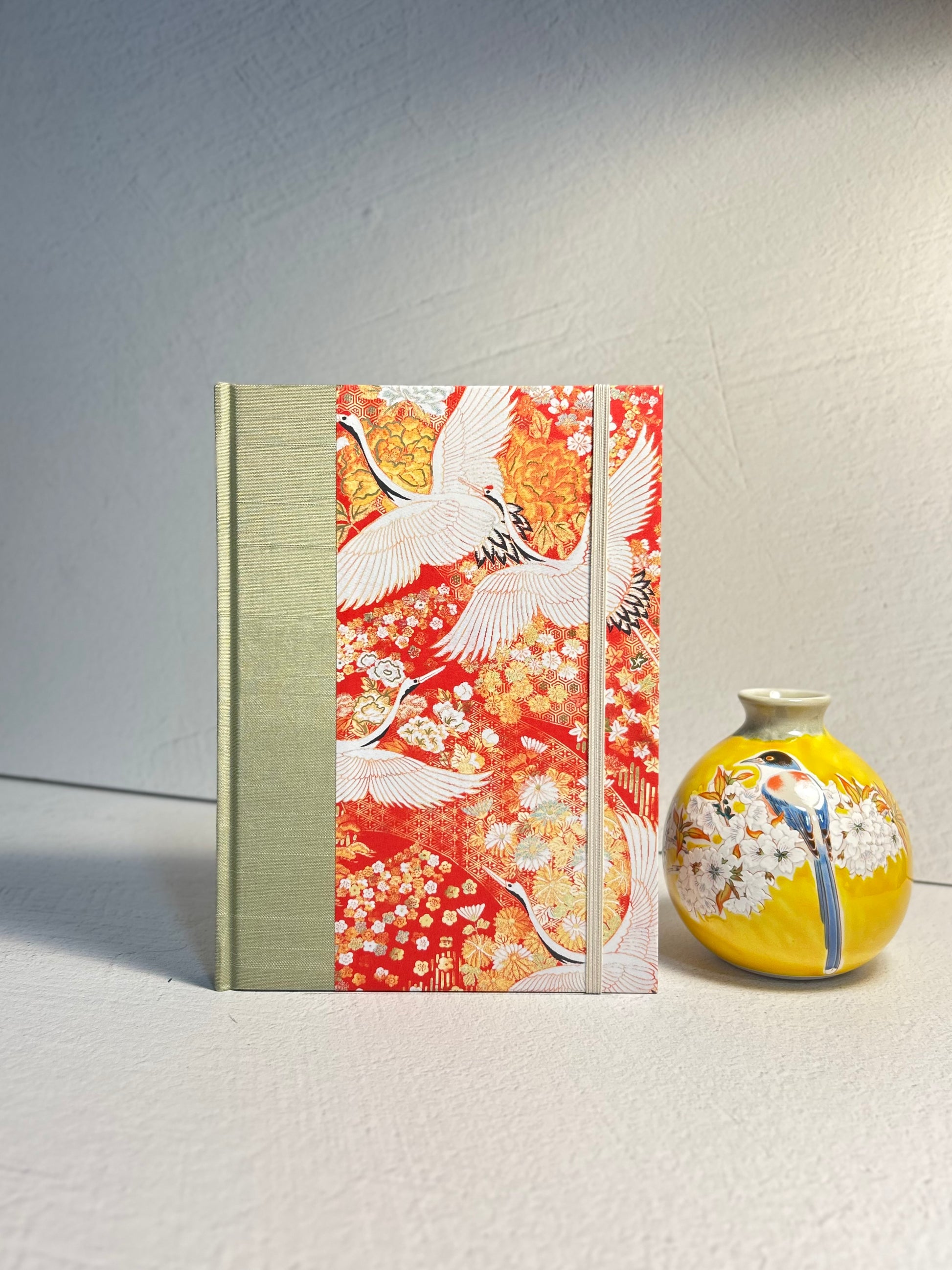 Luxurious Japanese book cloth and silkscreened Japanese Chiyogami decorative paper, is used on the hardcover casing.