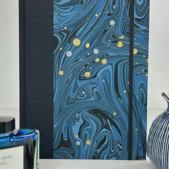 A5 160-page Hardcover Journal finished in Black Japanese book cloth and Renato Crepaldi hand marbled decorative paper